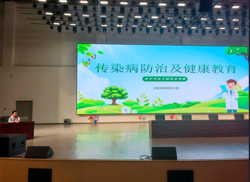 2025年9月20日下午,济宁汽车工程职业学院学院学术报告厅举行传染病防治与健康教育专题讲座。梁山县疾病预防控制中心艾滋病防治部主任陈