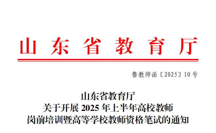 山东省教育厅 关于开展 2025 年上半年高校教师岗前培训暨高等学校教师资格笔试的通知